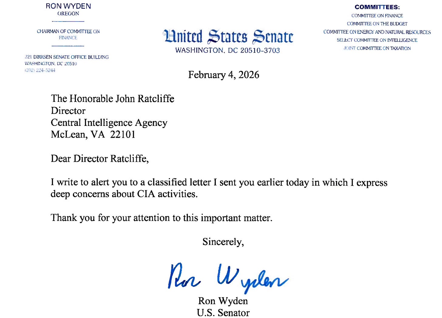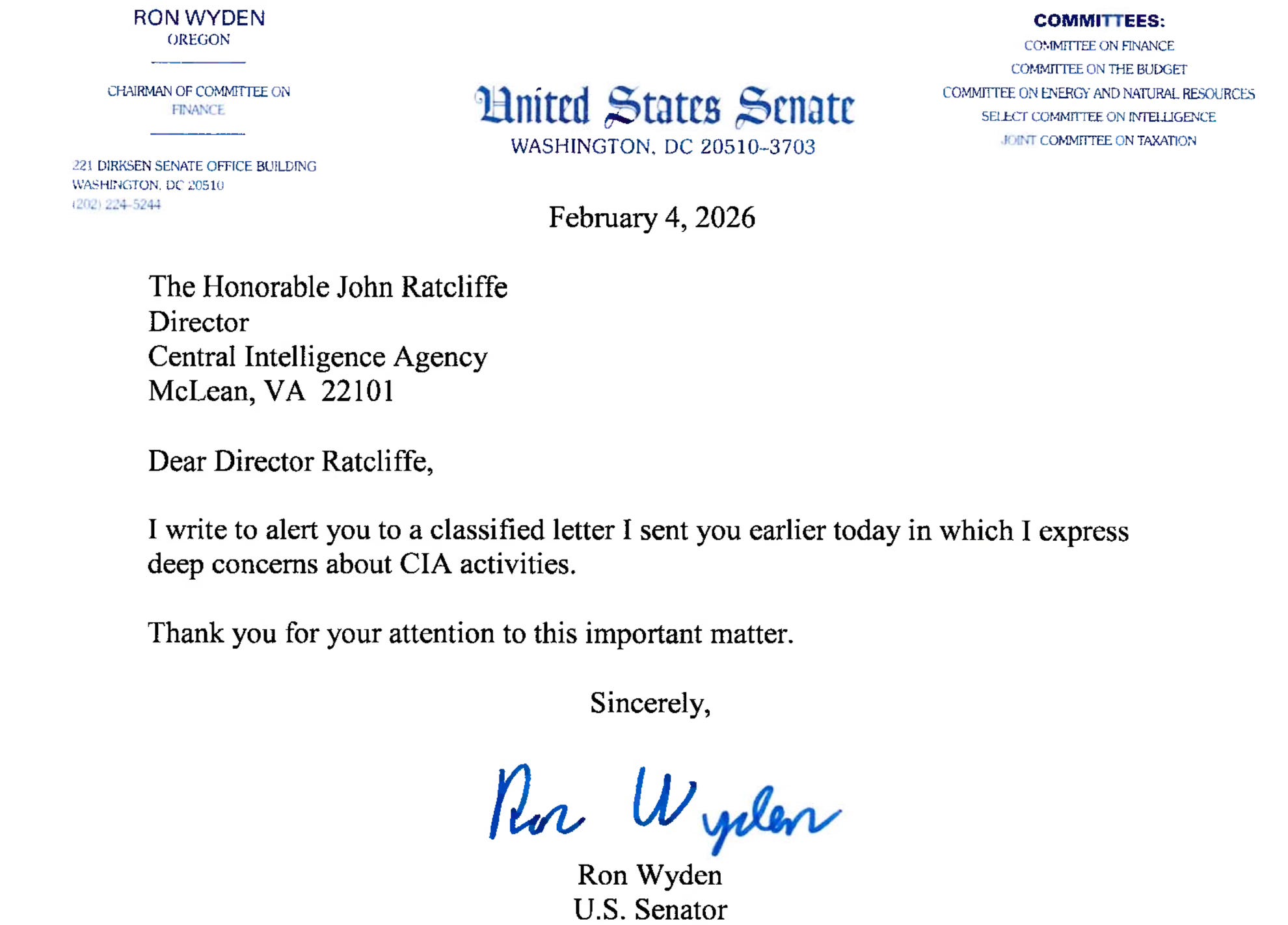 On Wednesday, Sen. Ron Wyden (D-OR) made public a brief letter he sent to the director of the CIA. Consensus among those who cover intelligence services is that Sen. Wyden wanted it on the record that he has “deep concerns about CIA activities.”